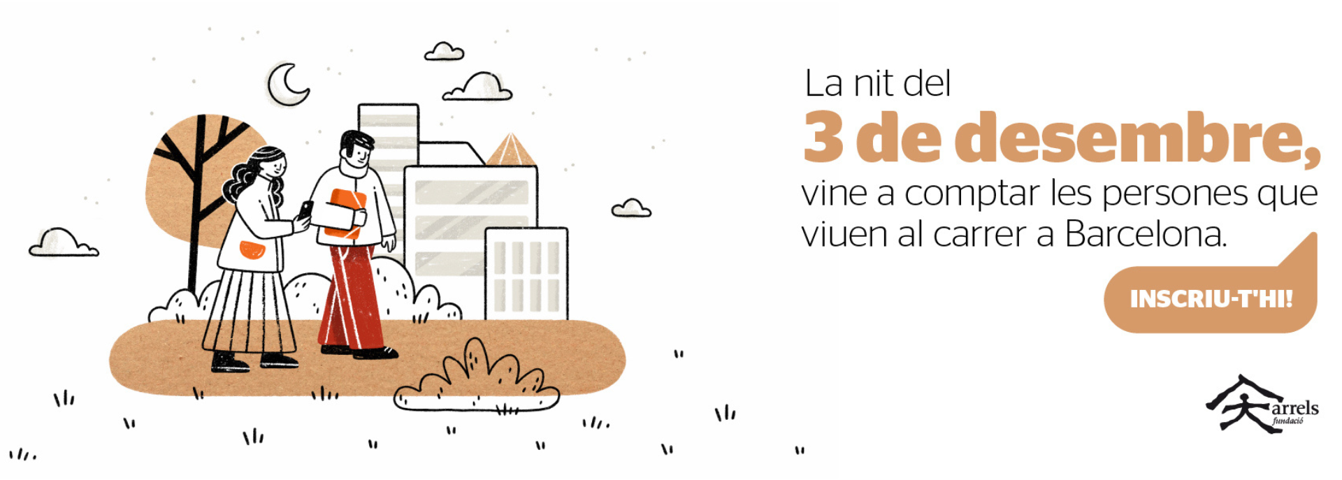 La nit del dimecres 3 al 4 de desembre farem un nou recompte a Barcelona per saber quantes persones dormen al carrer. Aquesta acció ens permetrà obtenir una fotografia de la ciutat en una nit concreta i conèixer la dimensió de la problemàtica del sensellarisme. També, serà una manera d’acostar la ciutadania a les veïnes i veïns que viuen al carrer als seus barris. Necessitem ser 500 persones voluntàries per fer-ho possible. T’hi apuntes?