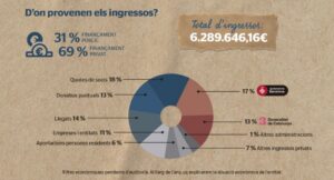 Els ingressos de l’any 2025 procedeixen majoritàriament del finançament privat, però també d’entitats públiques que ens donen un cop de mà.